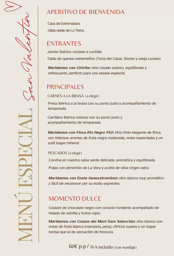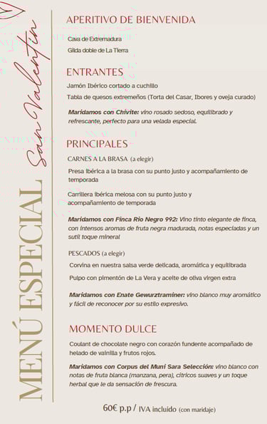 Celebra el amor con nuestros menús especiales: con o sin maridaje, tú eliges